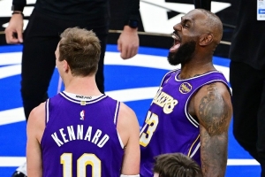 半场战罢詹姆斯三分3中0得到8分4助;肯纳德三分2中0一分未得,拿到3篮板2抢断。