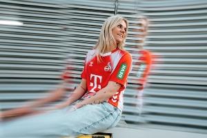 体育资讯04月30日讯 科隆近日发布了女足特别款球衣,主场球衣以红白配色为主,胸前是赞助商德国电信醒目的“·T·”标志,与拜仁主场球衣神似。