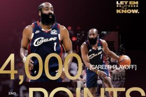 本场比赛,骑士球星哈登一扫过去几年天王山的低迷表现,全场拿下23分,其生涯季后赛总得分突破4000大关!