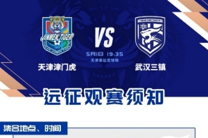 5月1日,武汉三镇将在2026怡宝中超联赛第9轮中客场对阵天津津门虎,即将与各位远征军在看台上相见,期待我们的战斗时刻!